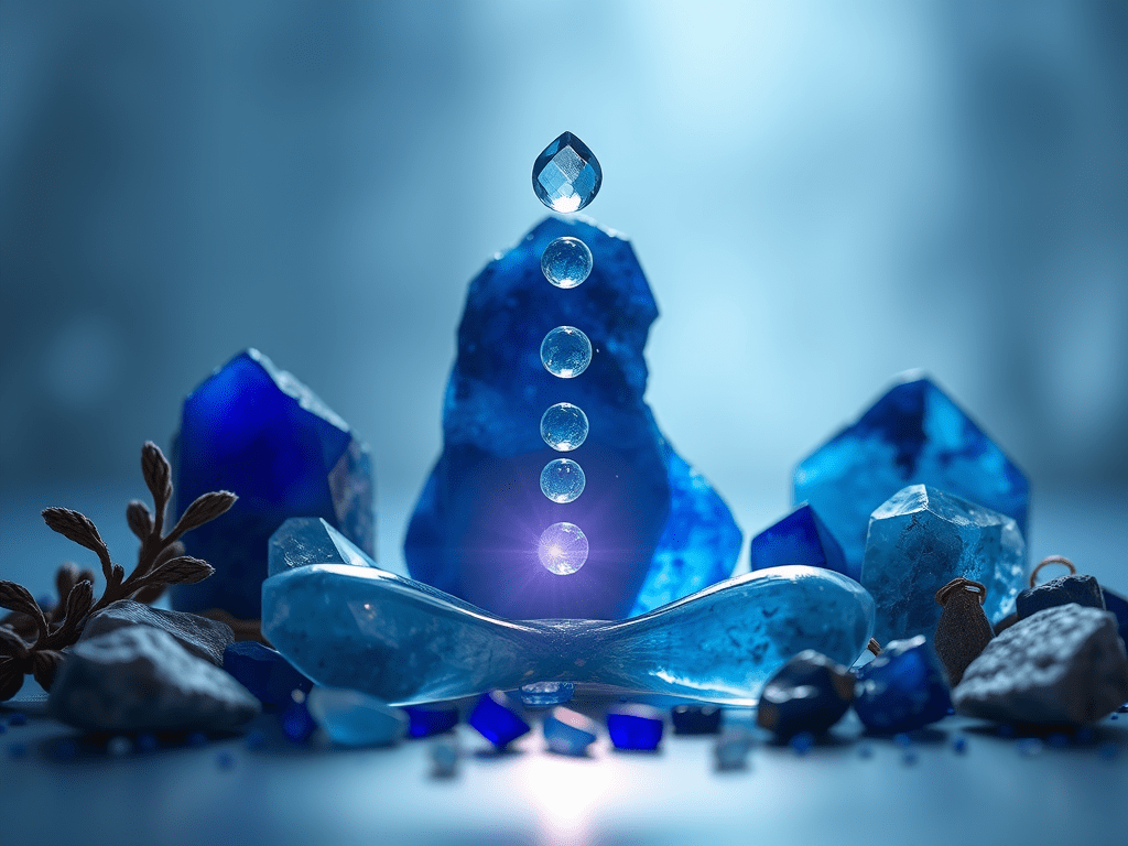 - Crystals: Aquamarine, Sodalite, Lapis lazuli